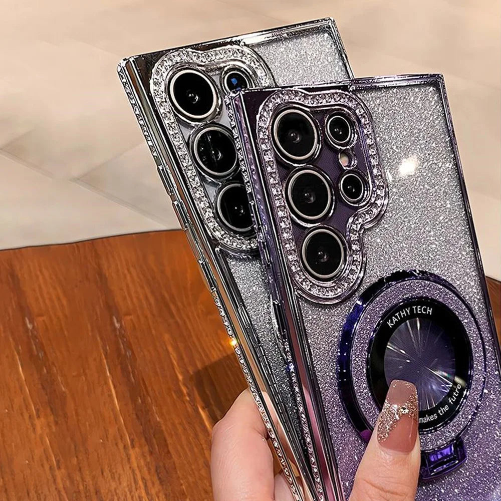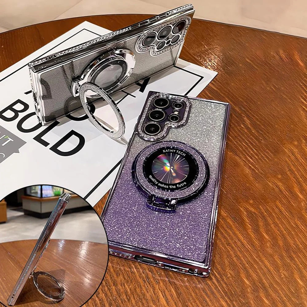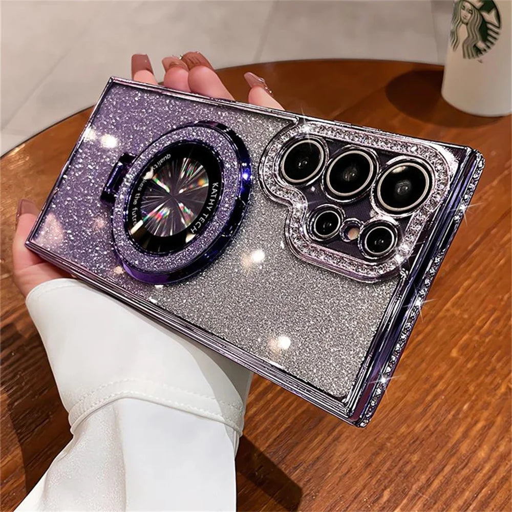 Luxury Glitter For Magsafe Magnetic Ring Stand Case for Samsung Galaxy S25 S24 S23 Ultra S22 Plus A55 A35 A25 A15 Diamond Cover